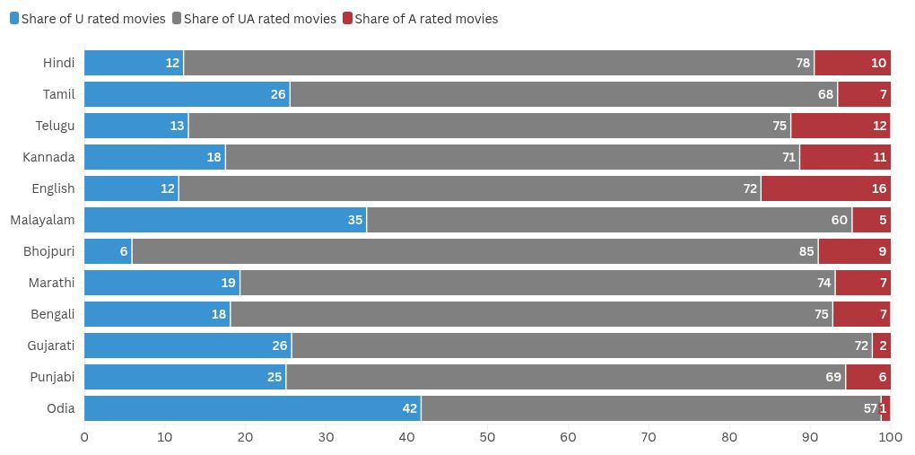 Share of U-rated films is highest in Malayalam, not Bhojpuri