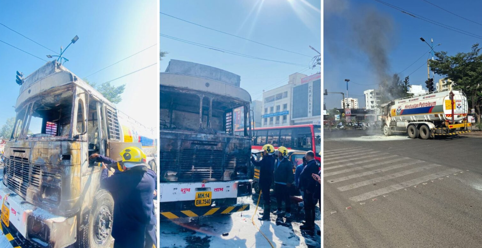 Reports say that the driver panicked when the fire broke out in the cabin. Fortunately, he jumped out right afterwards and escaped unharmed. The tanker had started from Loni and was en route to Pune.