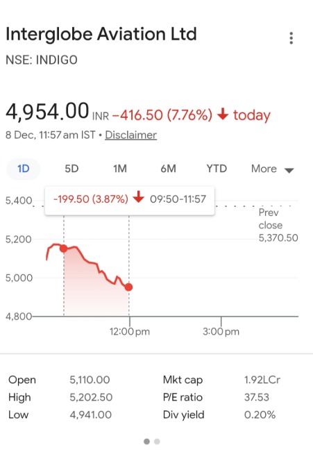 The country’s largest airline, Indigo, is facing a challenging period due to the ongoing delays and cancellations, resulting in a disruption of travel plans nationwide. On Monday, shares of InterGlobe Aviation, IndiGo’s parent company, dropped nearly 7%, marking the seventh straight day of declines. The steady fall reflects the uneasiness of investors surrounding the airline’s recent struggles.