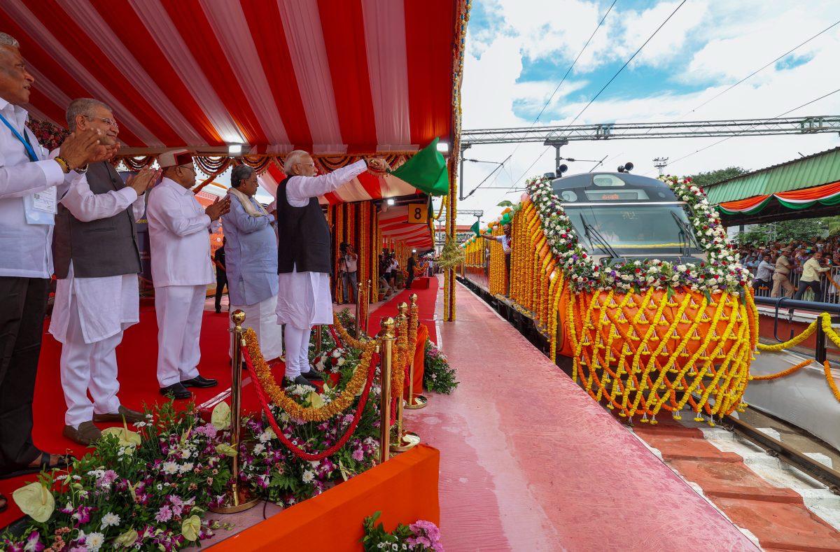 PM Modi also flagged of three new Vande Bharat trains from the Krantivira Sangolli Rayanna (Bengaluru) Station: