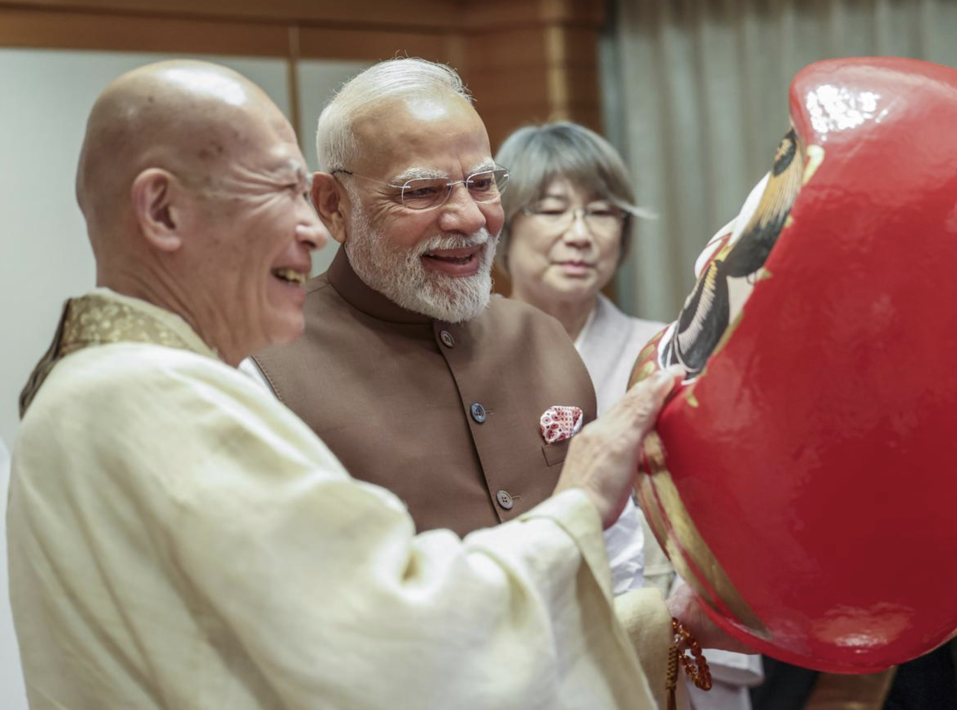 Prime Minister Narendra Modi was also presented with a thoughtful and meaningful gift from Japan, which was a traditional Daruma doll, which is a symbol of good luck in Japanese culture. He was presented with this doll today upon his arrival to Tokyo.
