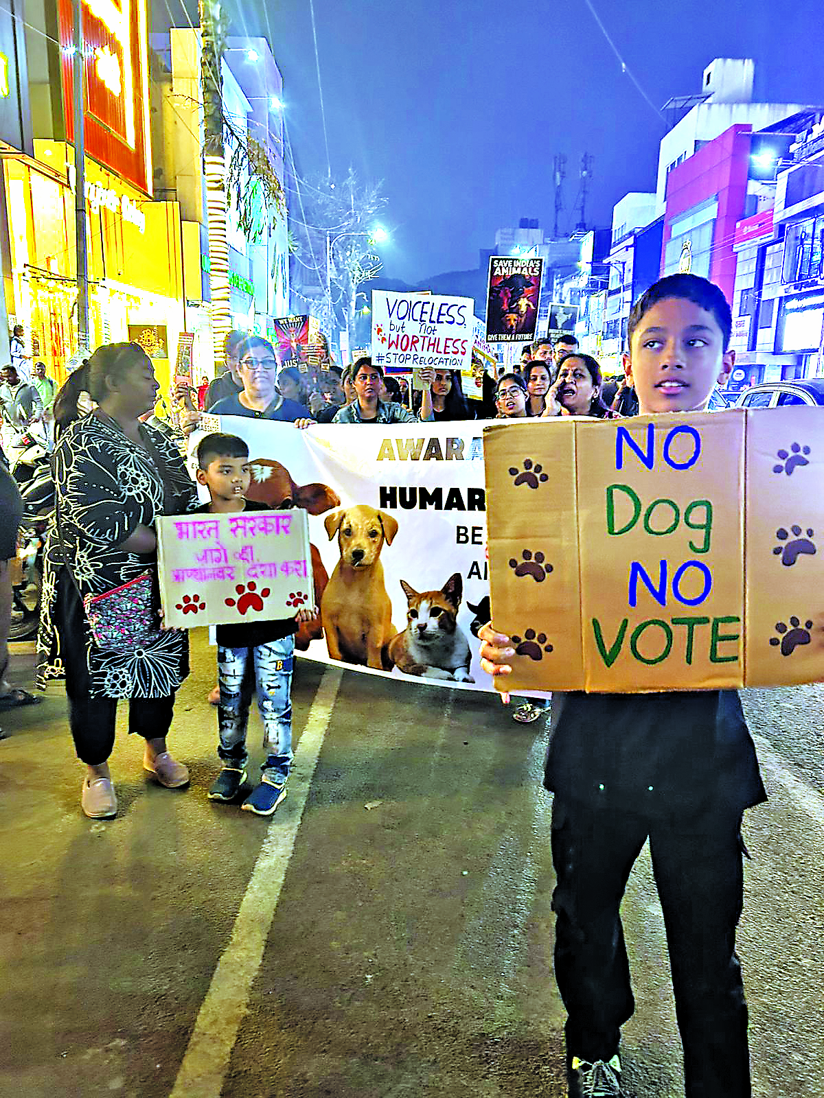 Mariam Abuhaideri, who is an animal activist, led a protest on MG Road in Pune with over 50 people against the Animal Welfare Board of India. This was about its recent Standard Operating Procedure for the stray dog management within the premises of institutions.