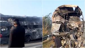 Flames in the fog. 4 lives lost, 25 hurt in a horrific crash on Yamuna Motorway. (Fee Press Journal)